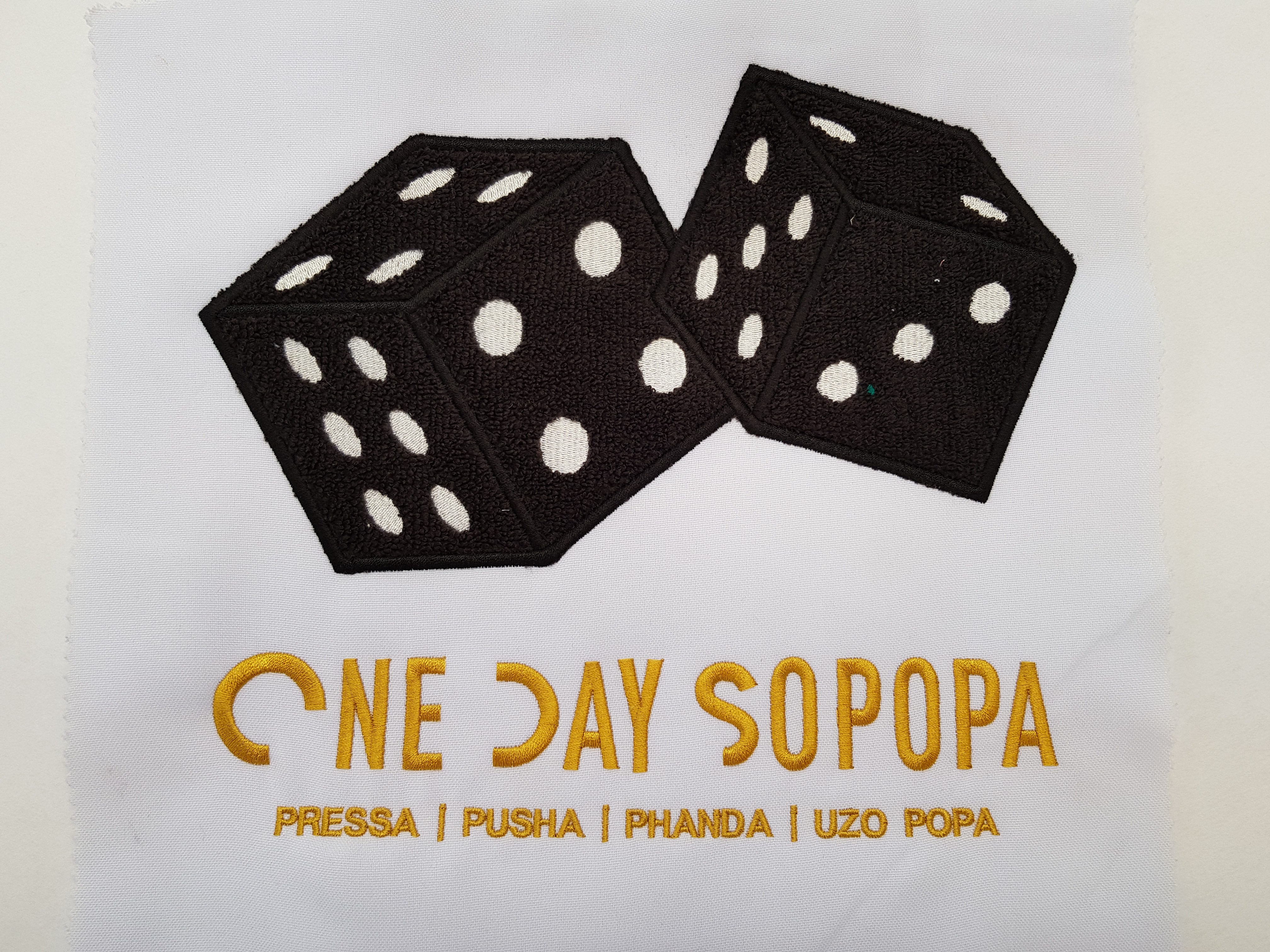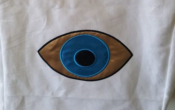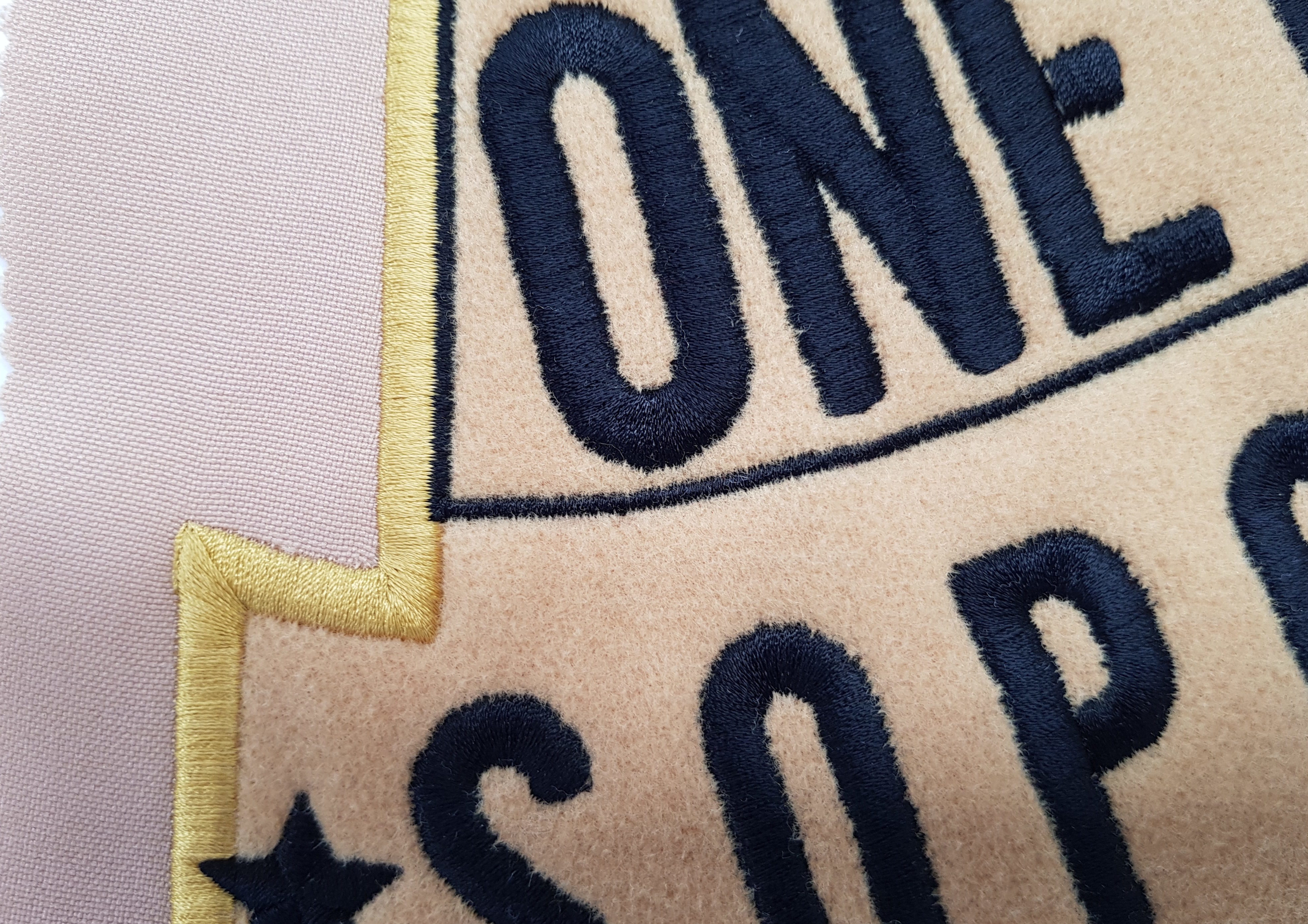 Embroidery run onto additional fabric, then onto a garment and then cut out. Materials such as caps, bags, any clothing items, etc can be used.